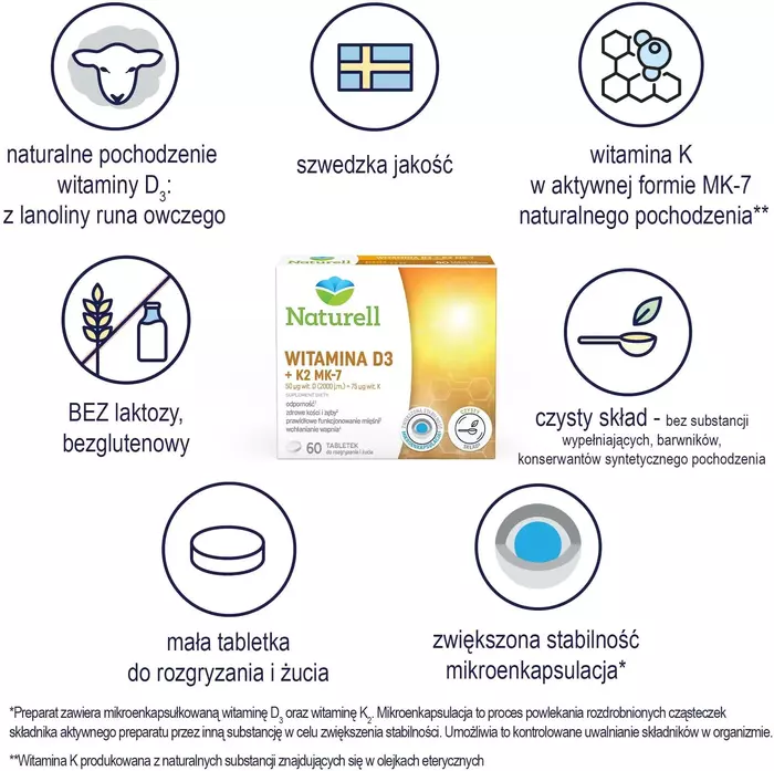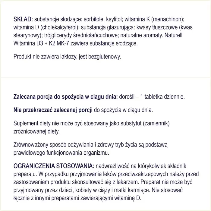 Пастилки имеют мягкую текстуру и приятный вкус, что делает их идеальными для ежедневного употребления. Витамин D3 + K2 Mk-7 Naturell особенно рекомендуется в период недостатка солнечного света и для людей с активным образом жизни.