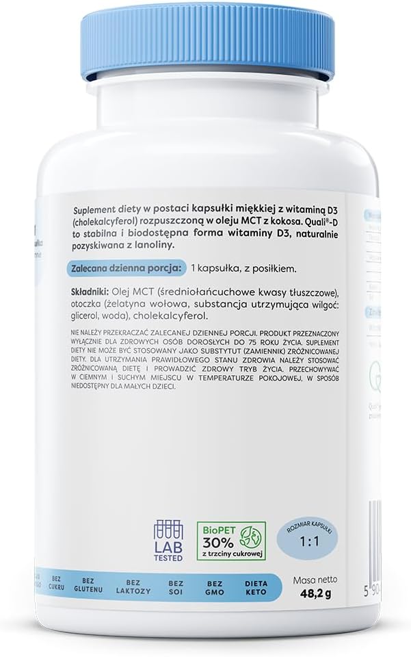 Витамин D3 Osavi 2000 МЕ 120 капсул — это высококачественная добавка, предназначенная для поддержания здоровья и укрепления организма. Каждая капсула содержит 2000 МЕ витамина D3, что способствует нормализации уровня этого важного витамина в организме.