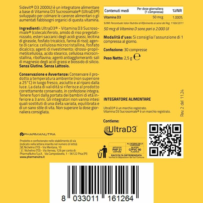 Витамин D3 Pharmanutra Sidevit D3 2000 МЕ — это высококачественная добавка, предназначенная для поддержания нормального уровня витамина D в организме. В каждой упаковке содержится 30 таблеток, которые обеспечивают оптимальную дозировку витамина D3 для вашего здоровья.