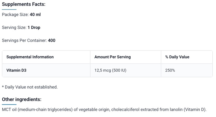 Витамин D3 Protego Premium Liquid имеет приятный вкус и легко усваивается организмом. Он подходит для людей всех возрастов и может быть использован в качестве дополнения к рациону в периоды недостатка солнечного света.