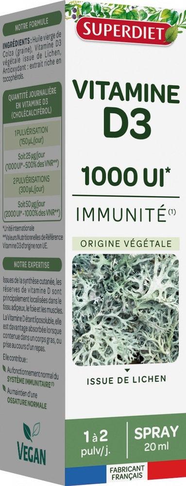 Витамин D3 Superdiet Immunity Спрей веганский 1000 МЕ, 20 мл — это эффективный способ поддержания иммунной системы и общего здоровья. Удобный формат спрея позволяет легко и быстро получать необходимую дозу витамина D3.