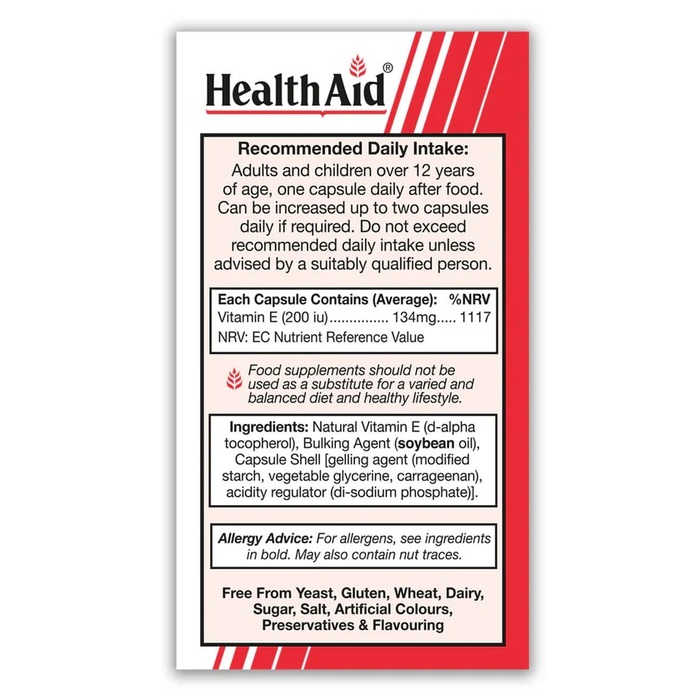 Капсулы легко проглатываются и подходят для ежедневного использования. Витамин E Health Aid 200UI рекомендуется для людей, стремящихся улучшить своё общее состояние здоровья и поддержать иммунитет.