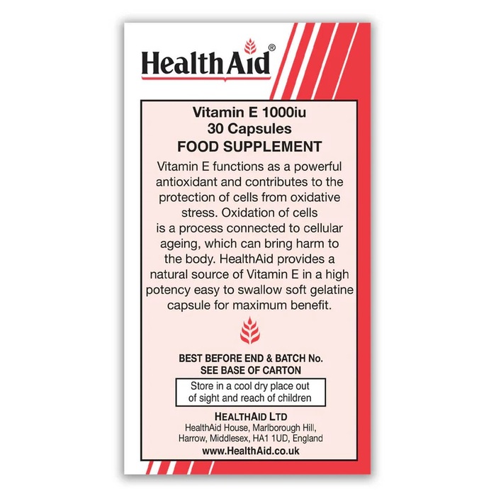 Витамин Е HealthAid в капсулах — это мощный антиоксидант, который поддерживает здоровье клеток и способствует нормальному функционированию организма. В каждой упаковке содержится 30 капсул, которые легко принимать и которые обеспечивают ваш организм необходимым витамином Е.