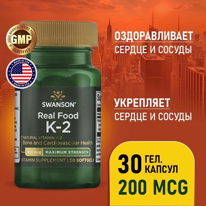 Swanson Витамин К2 (200 мкг), 30 капсул
