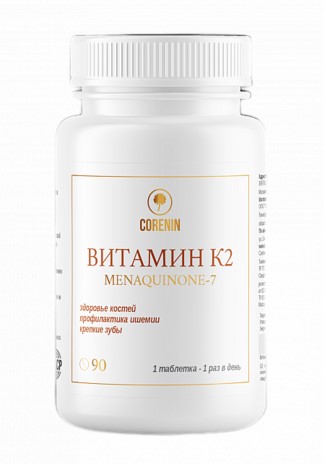 Витамин К2 (450 мг) от бренда Corenin — это высококачественная добавка, предназначенная для поддержания здоровья костей и сердечно-сосудистой системы. В каждой упаковке содержится 90 таблеток, что обеспечивает длительный курс приема.