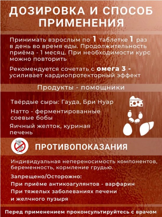 • Поддержка метаболизма: Витамин К2 участвует в метаболизме и может способствовать улучшению обмена веществ.