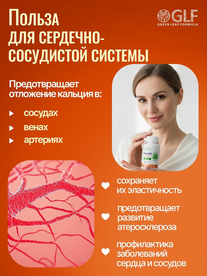 GREEN LEAF FORMULA Витамин K2 Mena Q7, 90 капсул