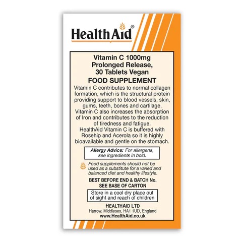 Витамин С с этерифицированными жирными кислотами 1000 мг от бренда Health Aid — это мощный антиоксидант, который поддерживает здоровье и иммунитет. В каждой упаковке содержится 30 таблеток, обеспечивающих ваш организм необходимым витамином С.