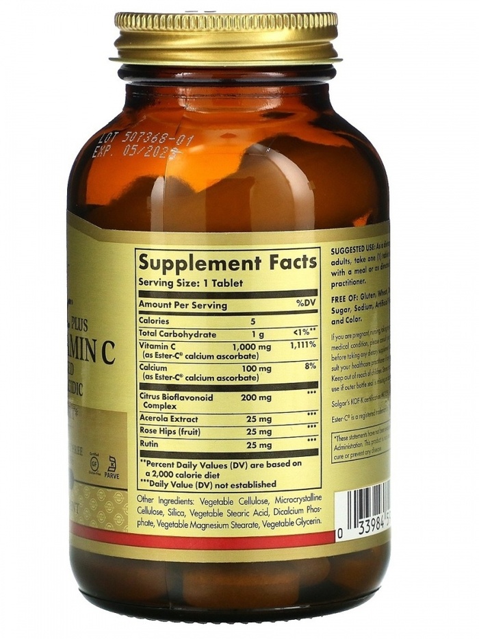 Витамин С Solgar Ester-C Plus 1000мг — это высококачественная добавка, которая поддерживает здоровье и активность организма. В каждой упаковке содержится 30 таблеток, обеспечивающих оптимальную дозу витамина С для вашего организма.