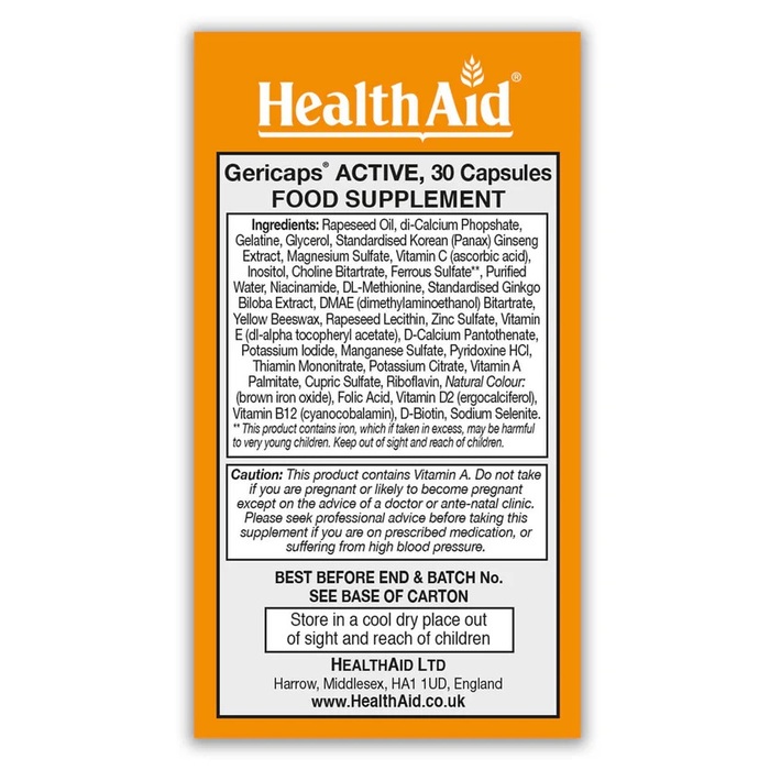 Витаминно-минеральный комплекс Health Aid Gericaps — это идеальное решение для поддержания здоровья всей семьи. В каждой упаковке содержится 30 капсул, которые обеспечат ваш организм необходимыми витаминами и минералами.