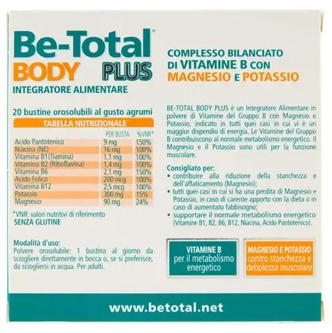 Витаминный комплекс Be-Total Body Plus, цитрус — это идеальное решение для поддержания здоровья и энергии на каждый день. В каждой упаковке содержится 20 пакетиков с приятным цитрусовым вкусом, которые обеспечат ваш организм необходимыми витаминами и минералами.