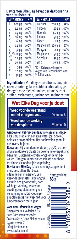 Витаминный комплекс Davitamon Every Day, шипучие таблетки — это идеальное решение для поддержания здоровья всей семьи. В каждой упаковке содержится 20 шипучих таблеток с приятным вкусом, которые обеспечат ваш организм необходимыми витаминами и минералами.
