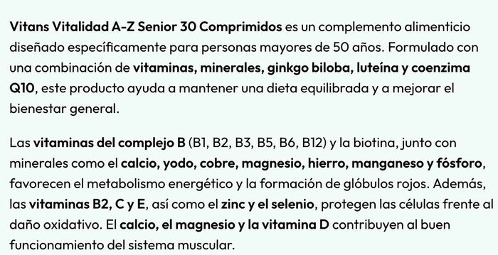 Таблетки имеют удобную форму и легко проглатываются, что делает их особенно привлекательными для пожилых людей. Комплекс подходит для использования в периоды простудных заболеваний, при умственных и физических нагрузках, а также при несбалансированном питании.