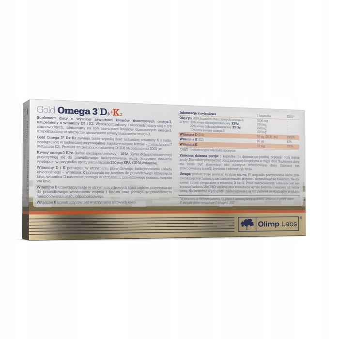 Витаминный комплекс Gold Omega 3 D3+K2 от Olimp Labs — это высококачественный продукт, который обеспечивает ваш организм необходимыми жирными кислотами и витаминами. В каждой упаковке содержится 30 капсул, которые помогут поддерживать здоровье и активность.