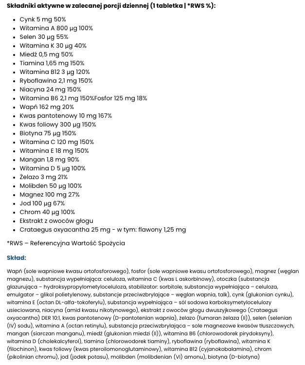Таблетки имеют удобную форму для проглатывания и подходят для ежедневного использования. Комплекс разработан с учетом потребностей пожилых людей, что делает его особенно полезным в период возрастных изменений.