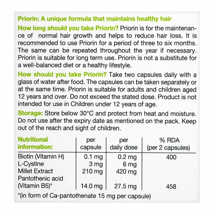 Капсулы Priorin имеют оптимальную дозировку, что позволяет легко включить их в повседневный режим. Комплекс подходит для использования в периоды стресса, после родов или при изменениях в гормональном фоне.