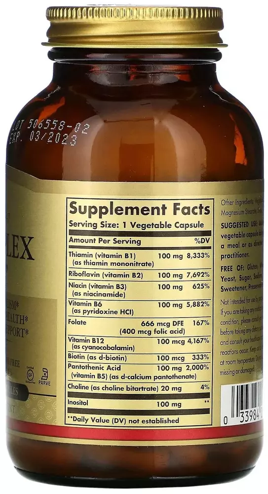 Витаминный комплекс Solgar B-Complex 100 — это высококачественный продукт, который обеспечивает организм необходимыми витаминами группы B. В каждой упаковке содержится 100 растительных капсул, что делает его удобным для длительного использования.