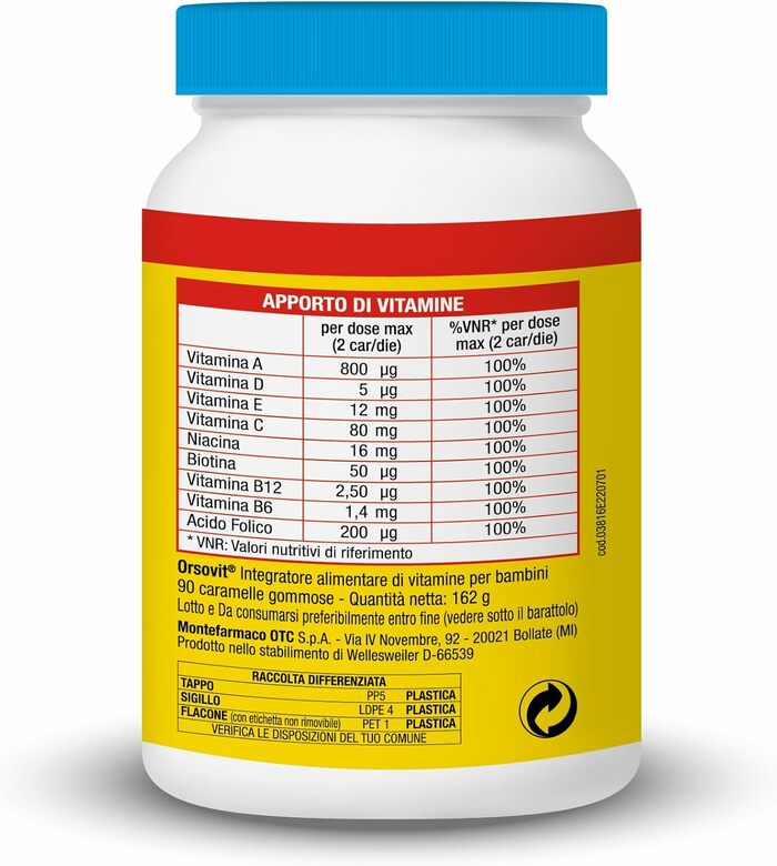 Montefarmaco Витаминный комплекс в виде жевательных конфет Montefarmaco OrsoVit для детей 90 штук