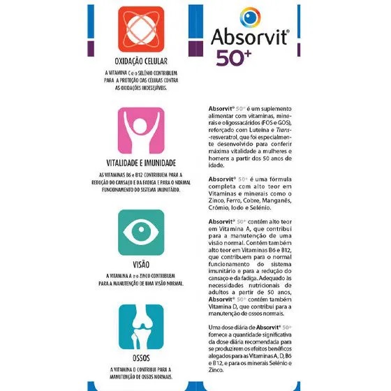 Витамины Absorvit 50+ — это специально разработанный мультивитаминный комплекс для людей старше 50 лет. В каждой упаковке содержится 100 таблеток, которые обеспечивают организм необходимыми витаминами и минералами для поддержания активного образа жизни.