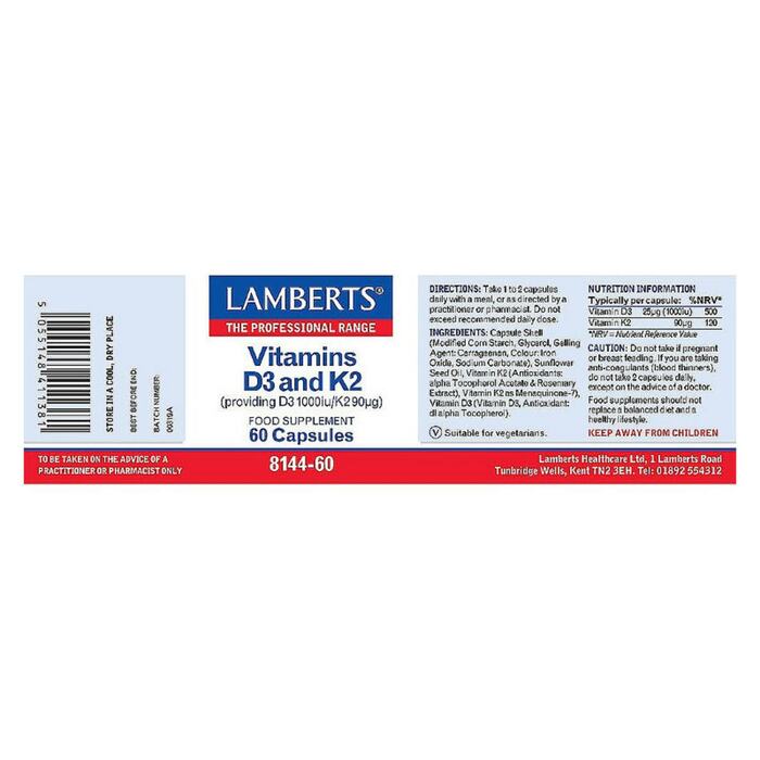 Витамины D3 и K2 Lamberts — это высококачественный комплекс, который поддерживает здоровье костей и сердечно-сосудистой системы. В каждой упаковке содержится 60 капсул, обеспечивающих оптимальное соотношение витаминов для вашего организма.