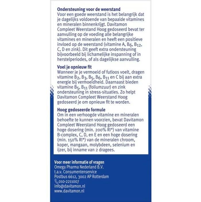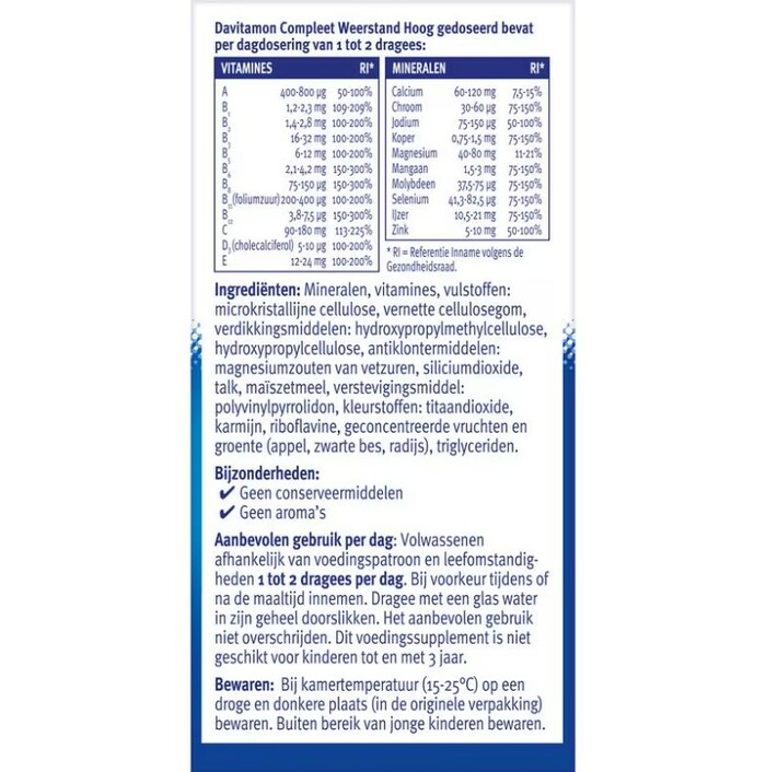 Витамины Davitamon Complete Resistance Forte с витамином D — это идеальное решение для поддержания здоровья всей семьи. В каждой упаковке содержится 150 таблеток, которые обеспечат ваш организм необходимыми витаминами и минералами.