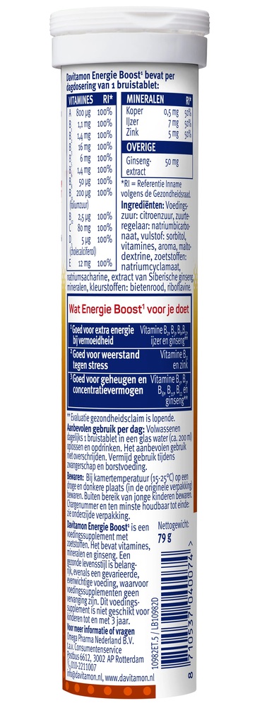 Davitamon Мультивитамины Energy Boost, 20 шипучих табл