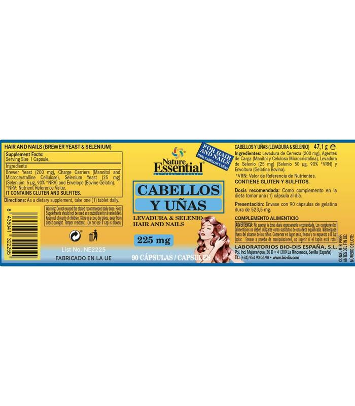 Витамины для волос и ногтей Nature Ess Cabellos Y Uñas — это идеальное решение для поддержания здоровья ваших волос и ногтей. В каждой упаковке содержится 90 капсул, которые обеспечат ваш организм необходимыми витаминами и минералами для укрепления и восстановления.