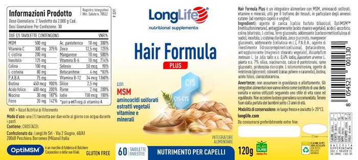 Витамины для волос LongLife Hair Formula Plus — это идеальное решение для поддержания здоровья ваших волос. В каждой упаковке содержится 60 таблеток, которые обеспечат ваш организм необходимыми витаминами и минералами для укрепления и восстановления волос.
