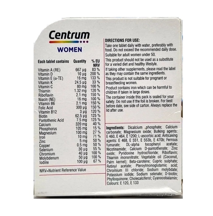 Таблетки Centrum Multivitamins имеют удобную форму и легко проглатываются, что делает их особенно привлекательными для женщин. Комплекс подходит для использования в периоды стресса, при умственных и физических нагрузках, а также при несбалансированном питании.