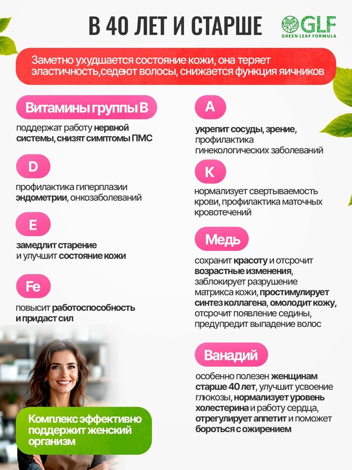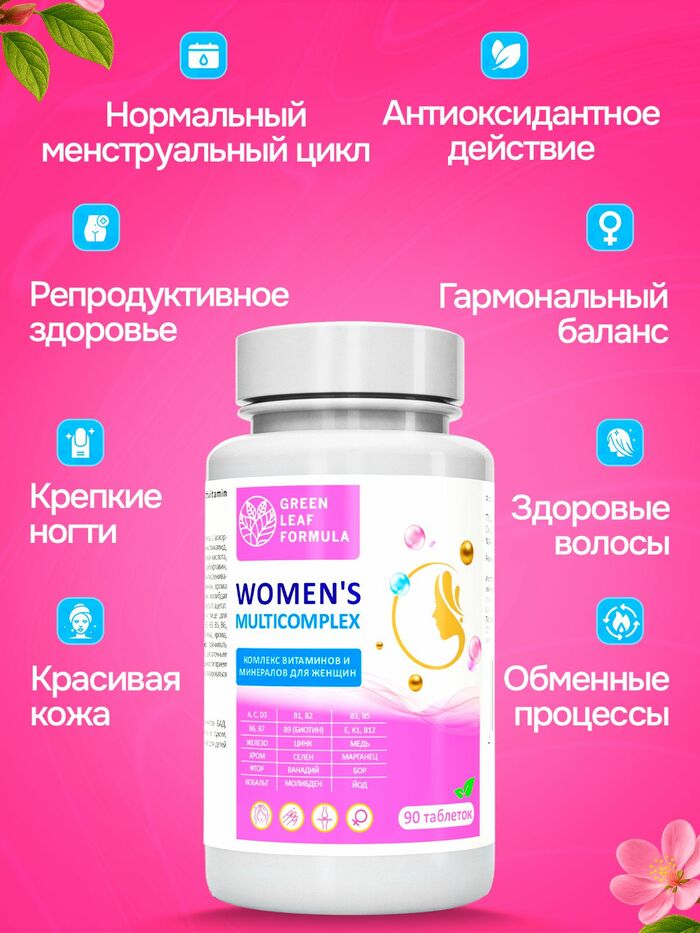 Витамины для женщин от бренда GREEN LEAF FORMULA — это идеальное решение для поддержания здоровья и иммунитета. В каждой упаковке содержится 90 таблеток, которые обеспечат ваш организм необходимыми витаминами и минералами.