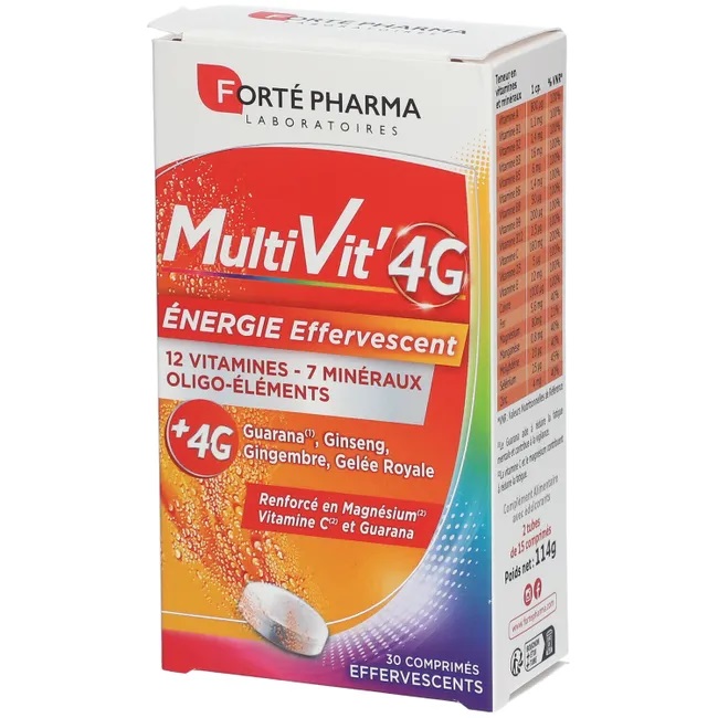 Витамины Forte Pharma Multivit' 4G Energy — это идеальное решение для поддержания энергии и тонуса в течение всего дня. В каждой упаковке содержится 30 таблеток, которые обеспечивают ваш организм необходимыми витаминами и минералами для активной жизни.