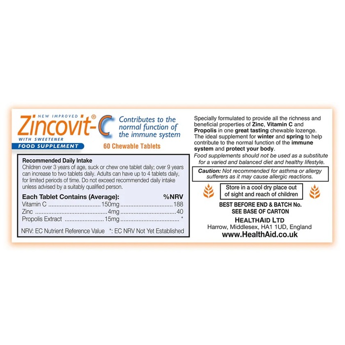 Витамины Health Aid Zincovit C с витамином C и цинком — это мощный комплекс для поддержания иммунной системы и общего здоровья. В каждой упаковке содержится 60 таблеток, которые обеспечивают ваш организм необходимыми витаминами и минералами.