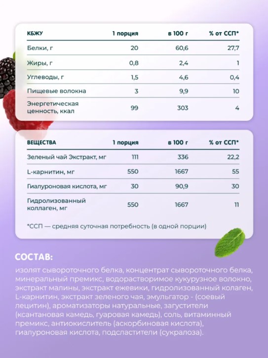 Протеиновый коктейль VitaWHEY Малина-ежевика обладает приятным вкусом и ароматом, что делает его отличным дополнением к вашему рациону. Он подходит как для спортсменов, так и для тех, кто просто хочет улучшить свое питание.