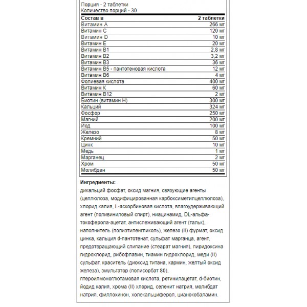 Таблетки имеют удобную форму и легко проглатываются, что делает их особенно привлекательными для всей семьи. Комплекс подходит для использования в периоды простудных заболеваний, при умственных и физических нагрузках, а также при несбалансированном питании.