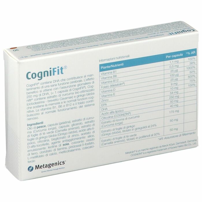 Капсулы Metagenics Cognifit легко проглатываются и подходят для использования в периоды повышенной умственной нагрузки, стресса и при необходимости улучшения когнитивных функций.