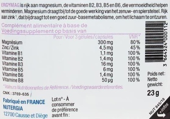Витамины Nutergia Ergymag — это идеальное решение для поддержания здоровья и энергии. В каждой упаковке содержится 45 капсул, которые обеспечат ваш организм необходимыми минералами и витаминами.