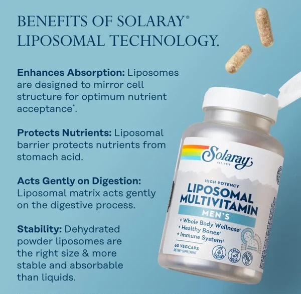 Витамины Solaray Liposomal Multivitamin для мужчин — это идеальное решение для поддержания здоровья мужчин. В каждой упаковке содержится 60 вегетарианских капсул, которые обеспечивают организм необходимыми витаминами и минералами.