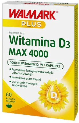 Витамины Walmark Витамин D3 Макс 4000 МЕ — это высококачественный продукт, предназначенный для поддержания оптимального уровня витамина D в организме. В каждой упаковке содержится 60 капсул, которые обеспечивают необходимую дозу витамина D3 для здоровья.