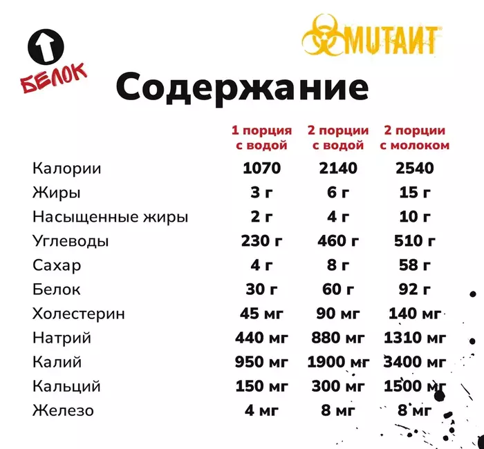 • Увеличение мышечной массы: Высокое содержание углеводов и белков способствует быстрому набору мышечной массы и улучшению физической формы.