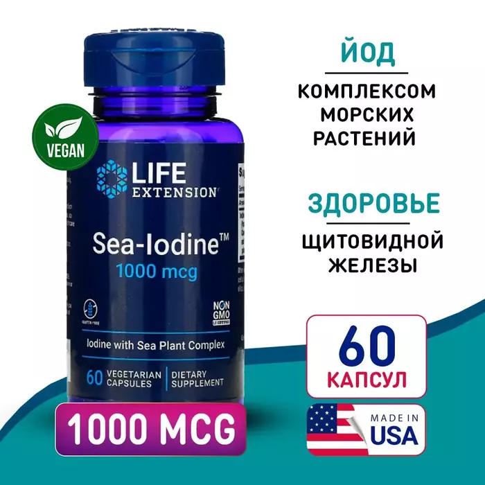Йод — это полезный для здоровья микроэлемент, который обычно попадает в организм с поваренной солью. Но многие люди стараются ограничивать употребление соли, чтобы не вредить здоровью. Sea-Iodine™ обеспечивает 1000 мкг этого важного элемента и позволяет не увеличивать потребление соли. Позаботьтесь о здоровье щитовидной железы не только с помощью Sea-Iodine™.