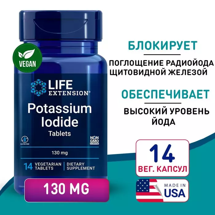 Life Extension Йодид Калия (130 мг), 14 табл