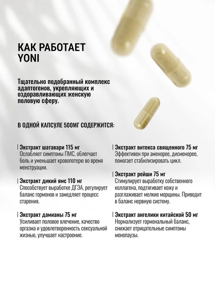 Yoni женское здоровье. Комплекс из натуральных ингредиентов, укрепляющий женское здоровье.