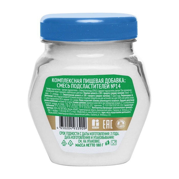 Fit Parad Заменитель сахара на основе стевии № 14 отличается высокой степенью сладости, что позволяет использовать его в меньших количествах по сравнению с обычным сахаром. Продукт не содержит ГМО и искусственных добавок, что делает его безопасным для ежедневного использования.