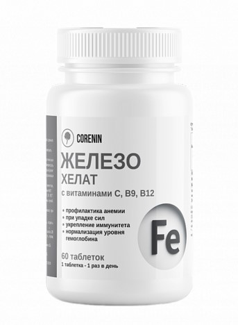 Железо хелат Плюс (25 мг) от бренда Corenin — это высококачественная добавка, предназначенная для поддержания нормального уровня железа в организме. В каждой упаковке содержится 60 таблеток, которые обеспечивают оптимальное усвоение железа благодаря хелатной форме.