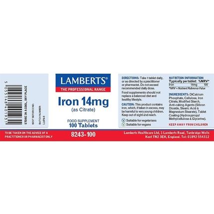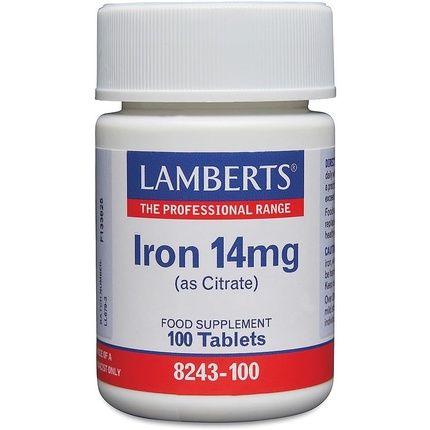 Железо Lamberts 14 мг в форме цитрата — это высококачественная добавка, предназначенная для поддержания нормального уровня железа в организме. В каждой упаковке содержится 100 таблеток, что обеспечивает длительный курс приема.