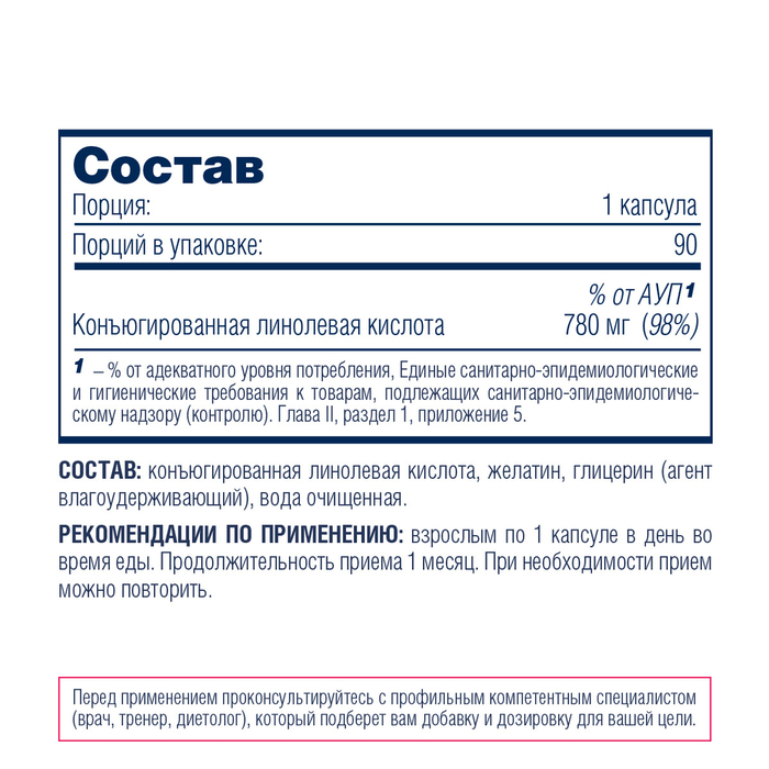 CLA 90 гелевых капсул идеально подходит для активных людей и тех, кто стремится к поддержанию здорового образа жизни. Продукт способствует увеличению мышечной массы и улучшению обмена веществ. Включите CLA 90 в свой рацион и почувствуйте разницу.