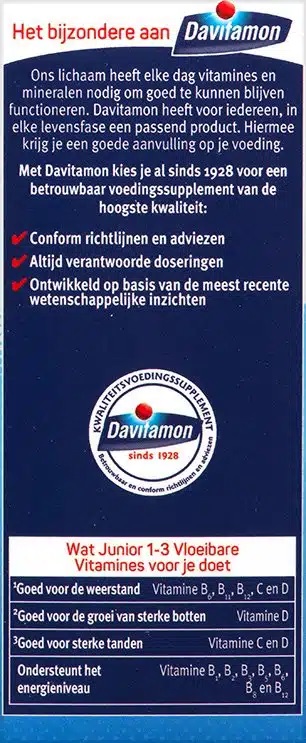Davitamon Жидкие витамины Davitamon Junior 1+ для детей со вкусом малины 100 мл