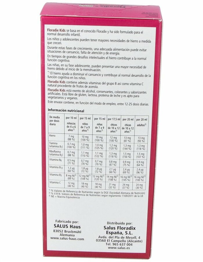 Salus Floradix Kids Iron Elixir подходит для детей с 1 года и старше. Он особенно полезен в период активного роста, при физической активности и в условиях недостатка железа в рационе.