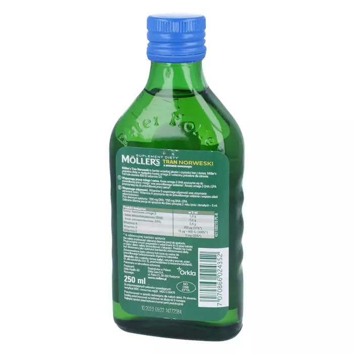 Жидкий рыбий жир Moller's Norwegian Premium Omega-3 имеет нейтральный вкус и легко усваивается организмом. Продукт подходит для всей семьи и может быть использован как добавка к пище.