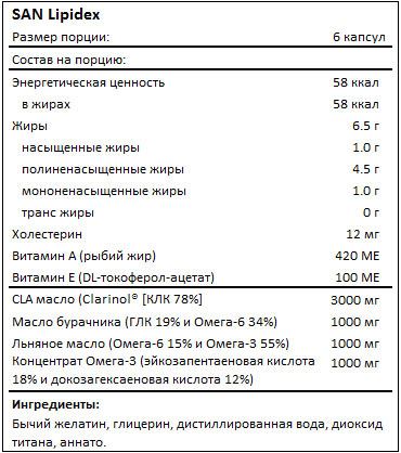 SAN Жиросжигатель Lipidex, 180 капсул